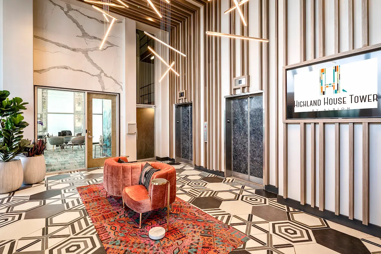 • Highland House Tower by Albion delivers 163 residential units in the form of a 22-story high-rise building overlooking the Highland Park neighborhood of Pittsburgh.